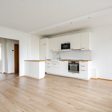 Vanhojen kalusteiden poisto ja uusien lisääminen raikastaa asunnon ilmeen. Tämä auttaa näkemään tilan modernimpana ja muunneltavampana, mikä voi nopeuttaa myyntiä.
